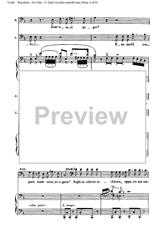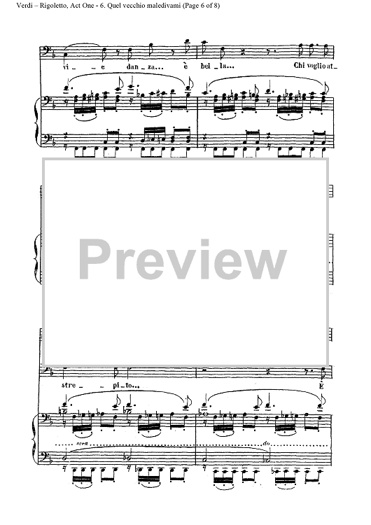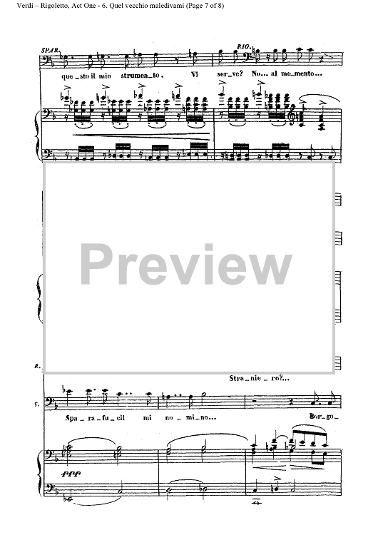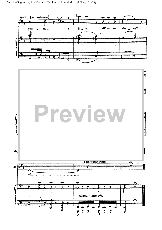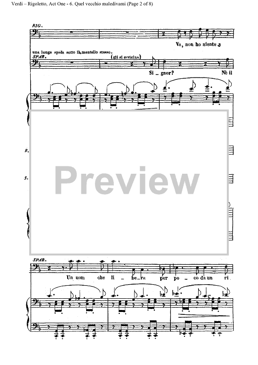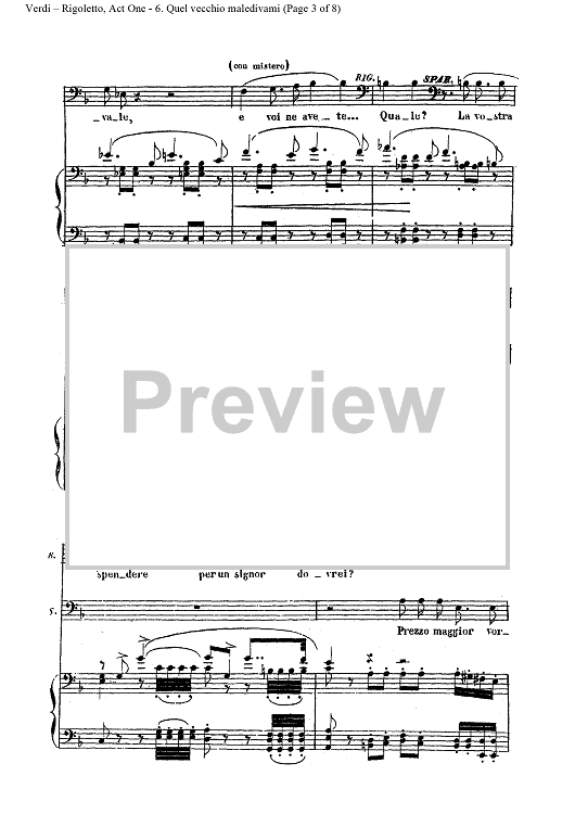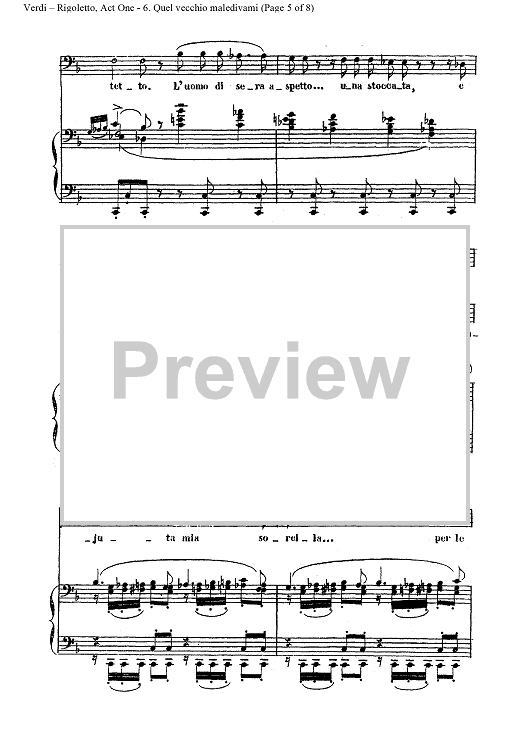 Digital Sheet Music for Rigoletto, Act 1, No. 6: Quel vecchio maledivami by Giuseppe Verdi scored for Vocal Score; id:444562