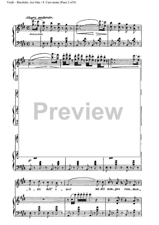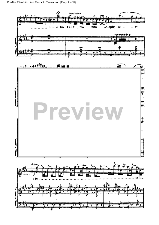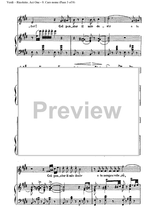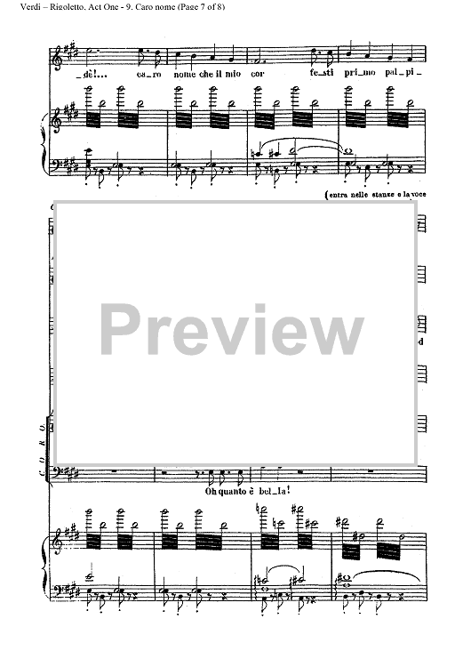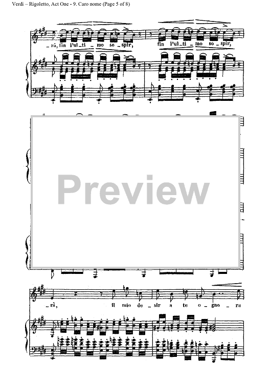 Digital Sheet Music for Rigoletto, Act 1, No. 9: Caro nome che il mio cor by Giuseppe Verdi scored for Vocal Score; id:444565