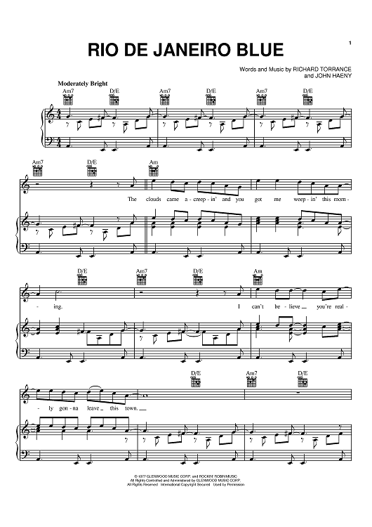 Digital Sheet Music for Rio De Janeiro Blue by Freddy Cole, Randy Crawford, John Haeny, Richard Torrance scored for Piano/Vocal/Chords; id:373288