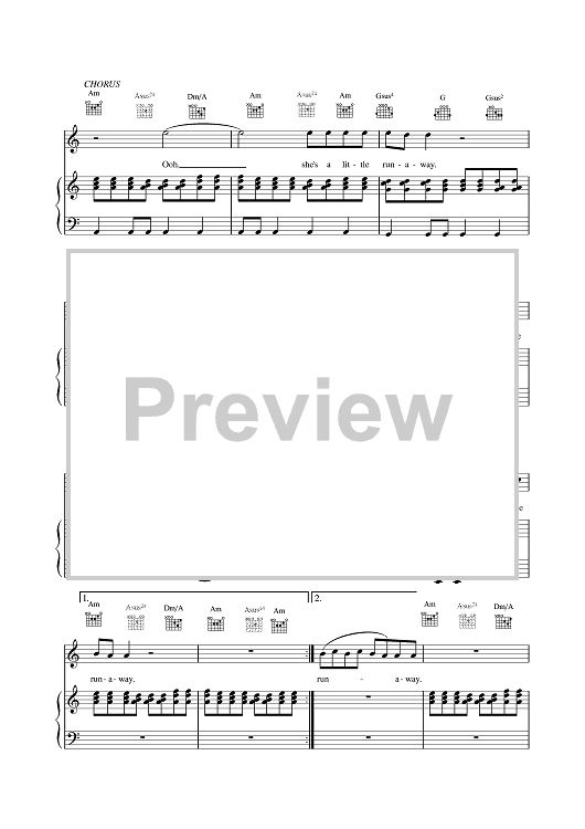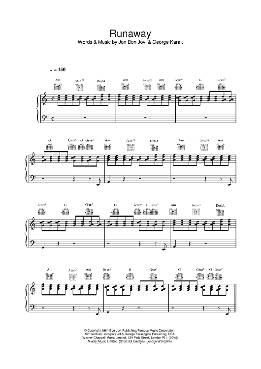 Digital Sheet Music for Runaway by Bon Jovi, George Karak scored for Piano/Vocal/Chords; id:379603