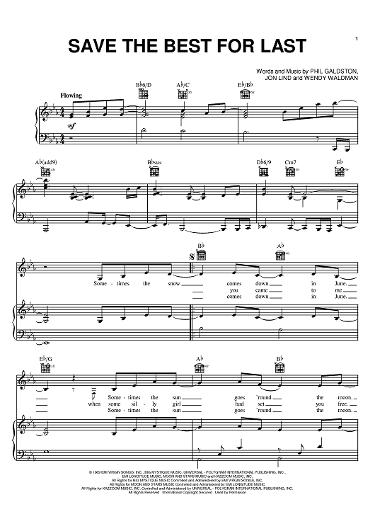 Digital Sheet Music for Save The Best For Last by Jon Lind, Wendy Waldman, Vanessa Williams, Phil Galdston scored for Piano/Vocal/Chords; id:383723