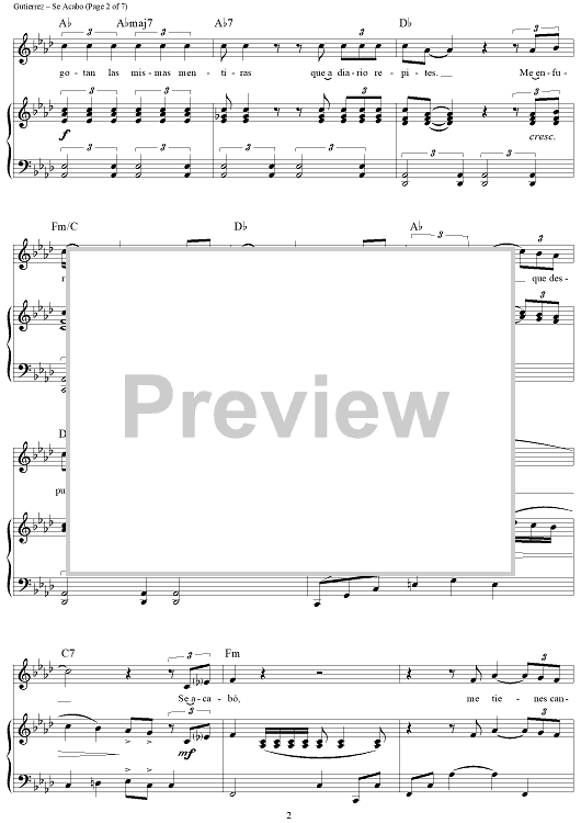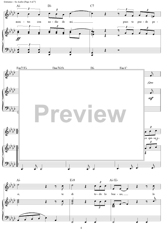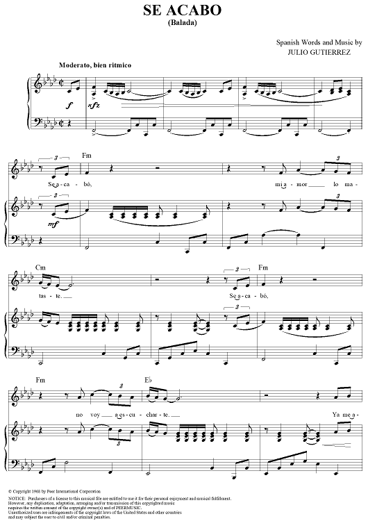 Digital Sheet Music for Se Acabo by Vikki Carr, Julio Gutiérrez scored for Piano/Vocal/Chords; id:355901