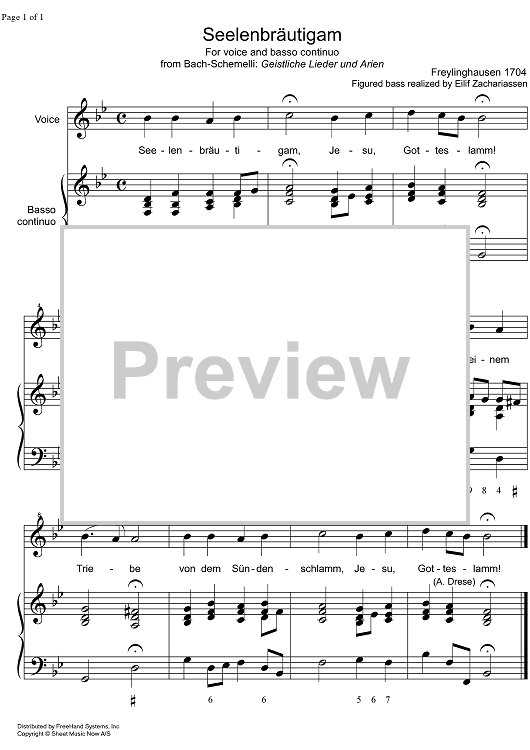 Digital Sheet Music for Seelenbräutigam by Johann Anastasius Freylinghausen, Eilif Zachariassen scored for Voice/Continuo; id:325955