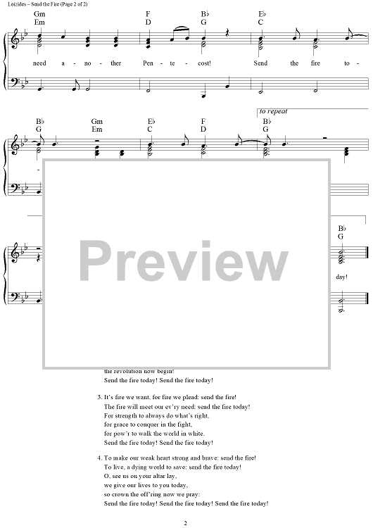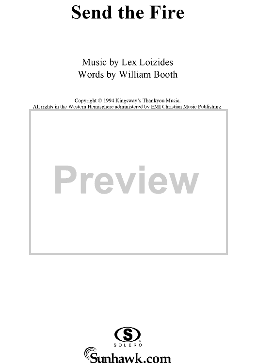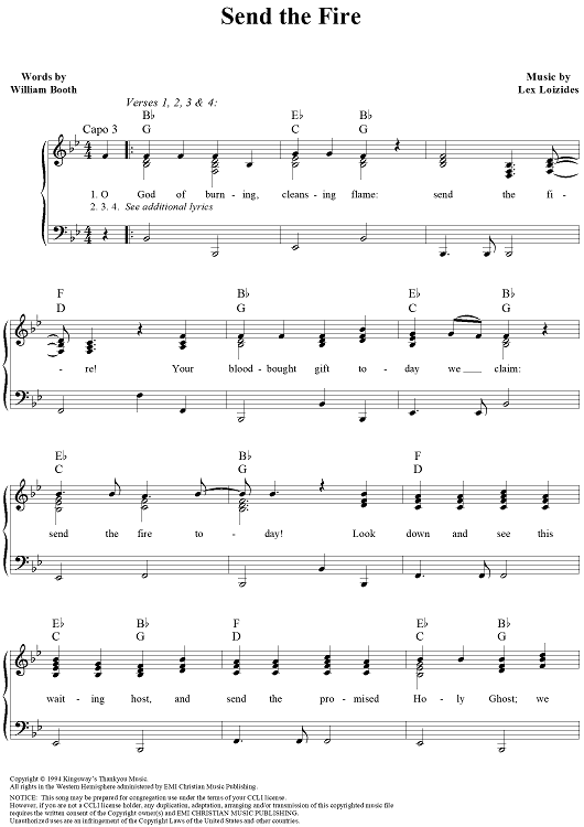 Digital Sheet Music for Send the Fire (O God of Burning, Cleansing, Flame) by Lex Loizides, William Booth scored for Piano/Vocal/Chords; id:184012
