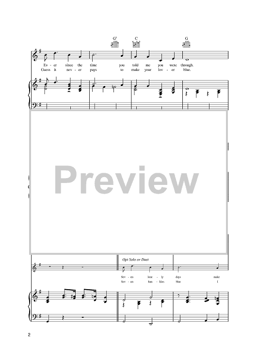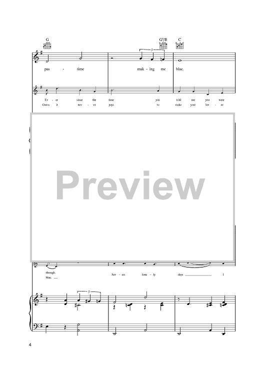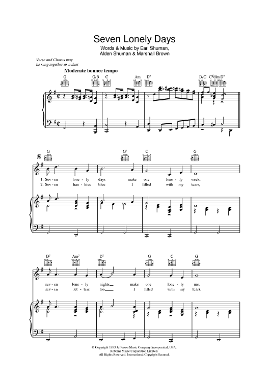 Digital Sheet Music for Seven Lonely Days by Earl Shuman, Marshall Brown, Alden Shuman scored for Piano/Vocal/Chords; id:395698