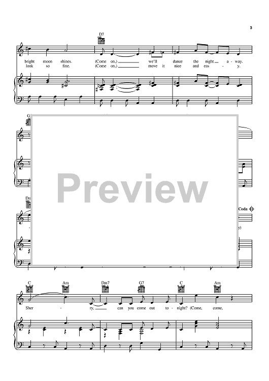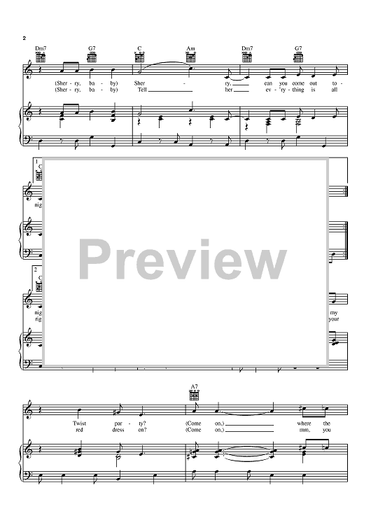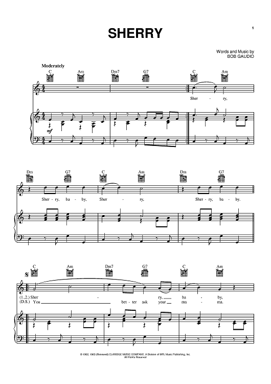 Digital Sheet Music for Sherry by Bob Gaudio, Frankie Valli, The Four Seasons scored for Piano/Vocal/Chords; id:389861
