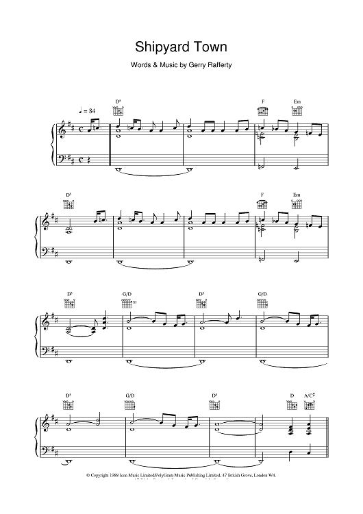 "Shipyard Town" Sheet Music by Gerry Rafferty