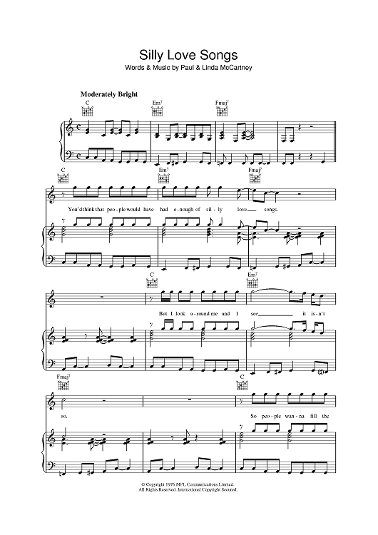 Digital Sheet Music for Silly Love Songs by Paul McCartney, Linda McCartney scored for Piano/Vocal/Chords; id:390600