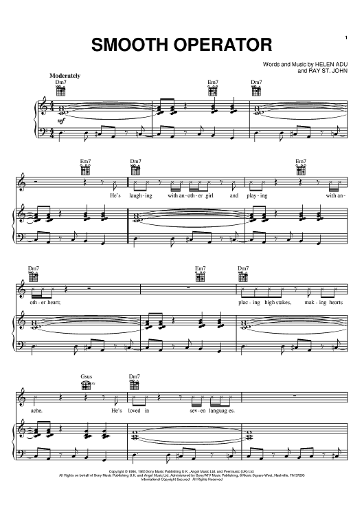 Digital Sheet Music for Smooth Operator by Sade Adu, Ray St. John, Sade scored for Piano/Vocal/Chords; id:379186
