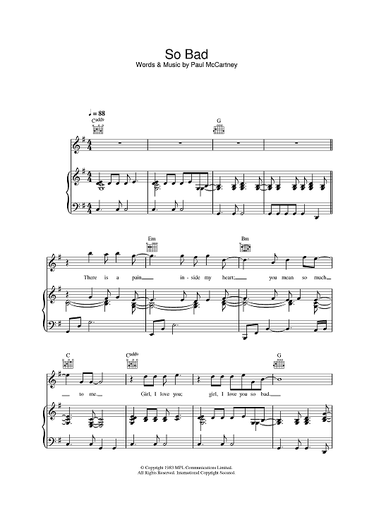 Digital Sheet Music for So Bad by Paul McCartney scored for Piano/Vocal/Chords; id:375740