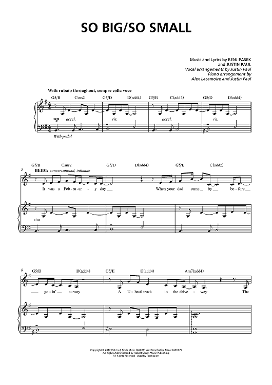 Digital Sheet Music for So Big/So Small - from Dear Evan Hansen by Benj Pasek, Justin Paul, Alex Lacamoire scored for Piano/Vocal/Chords; id:465166