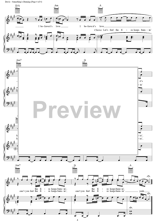 Digital Sheet Music for Something's Burning by Mac Davis scored for Piano/Vocal/Chords; id:272919