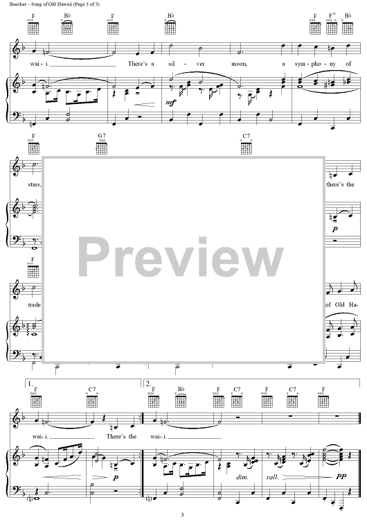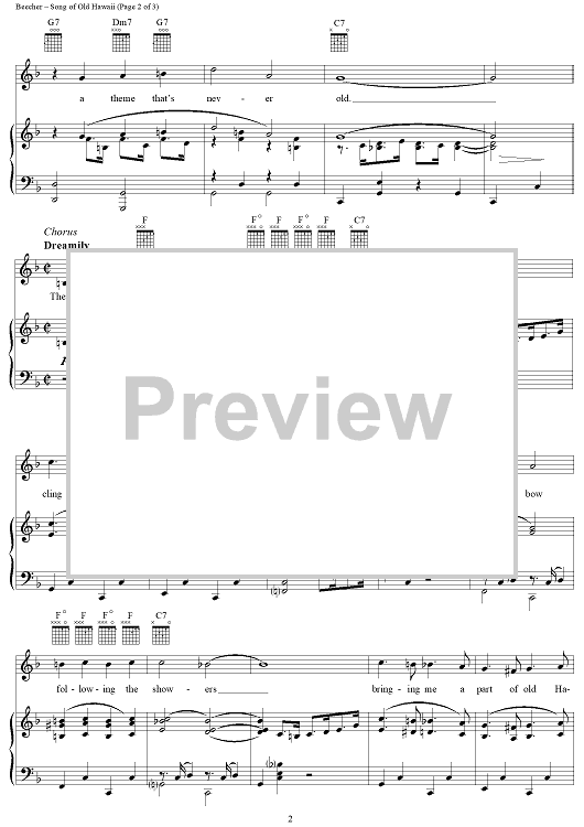 Digital Sheet Music for Song of Old Hawaii by Gordon Beecher, Johnny Noble scored for Piano/Vocal/Chords; id:275495