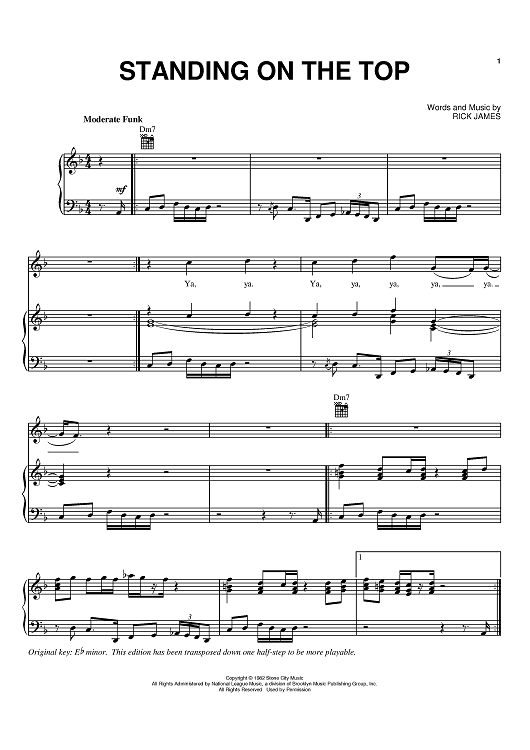 Digital Sheet Music for Standing On The Top by Rick James scored for Piano/Vocal/Chords; id:370085