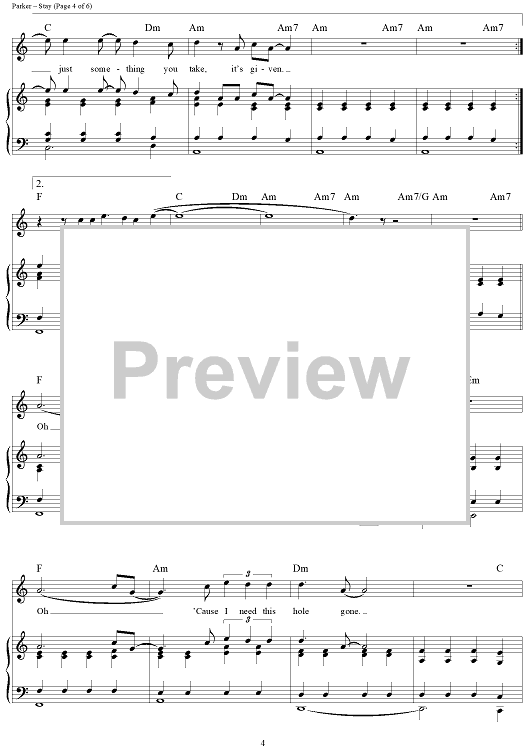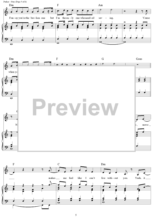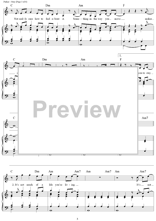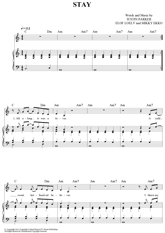 Digital Sheet Music for Stay by Rihanna, Justin Parker, Elof Loelv, Mikky Ekko scored for Piano/Vocal/Chords; id:434244