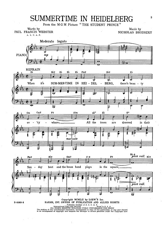 Digital Sheet Music for Summertime in Heidelberg by Paul Francis Webster, Nicholas Brodszky scored for Piano/Vocal/Chords; id:426508