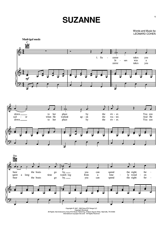 Digital Sheet Music for Suzanne by Judy Collins, Leonard Cohen scored for Piano/Vocal/Chords; id:402647