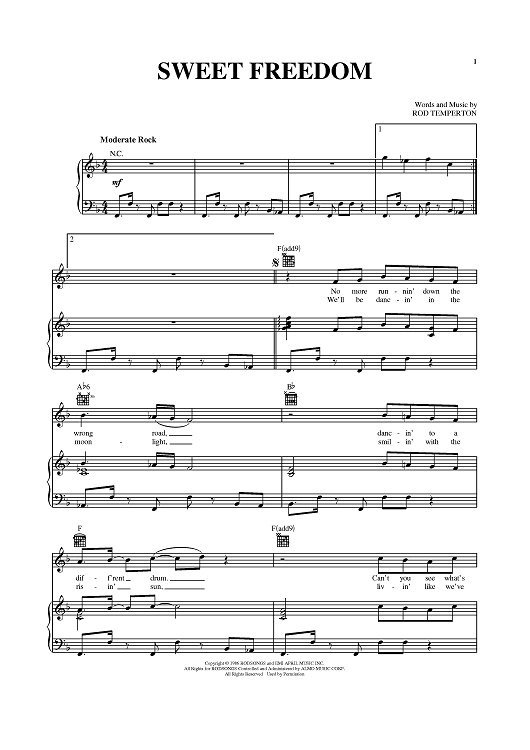 Digital Sheet Music for Sweet Freedom by Michael McDonald, Rod Temperton scored for Piano/Vocal/Chords; id:390645