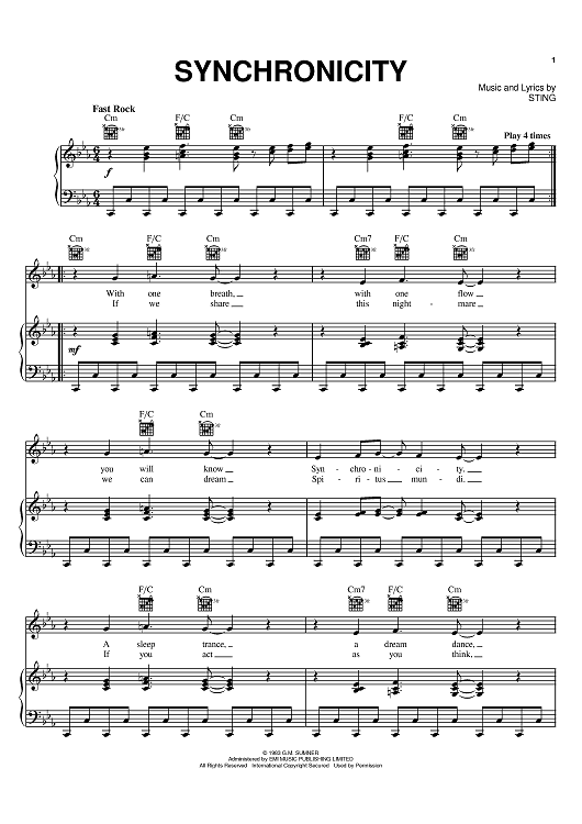 Digital Sheet Music for Synchronicity by Sting, The Police scored for Piano/Vocal/Chords; id:398617