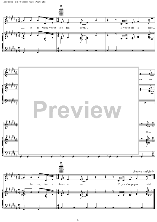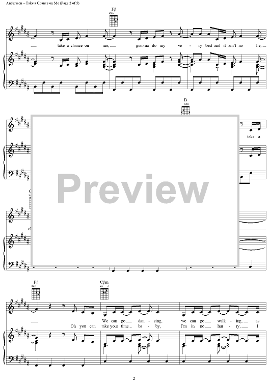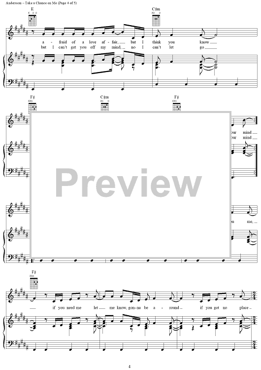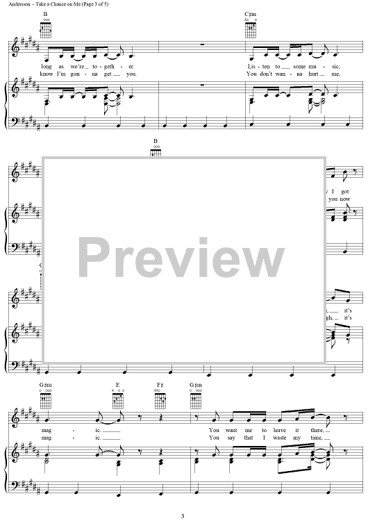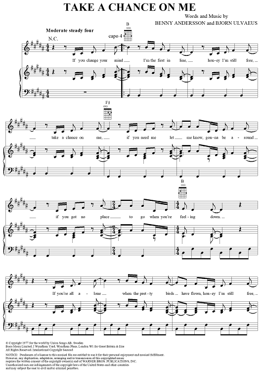 Digital Sheet Music for Take a Chance on Me by ABBA, Benny Andersson, Bjorn Ulvaeus scored for Piano/Vocal/Chords; id:292363