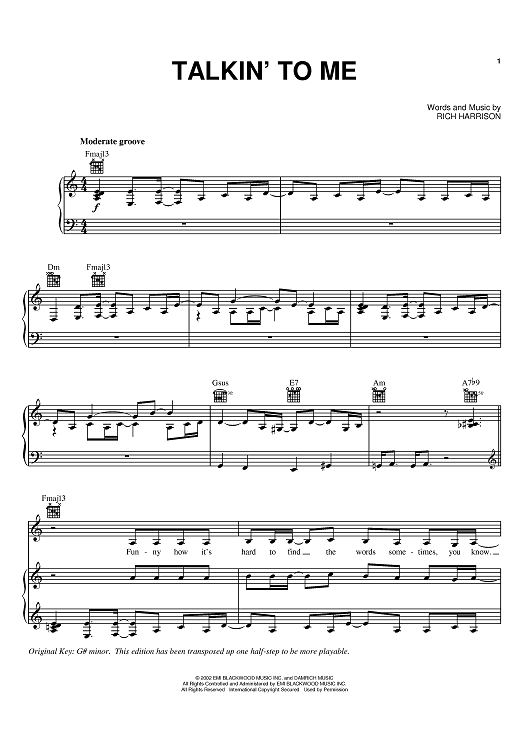 Digital Sheet Music for Talkin' To Me by Rich Harrison, Amerie scored for Piano/Vocal/Chords; id:370486