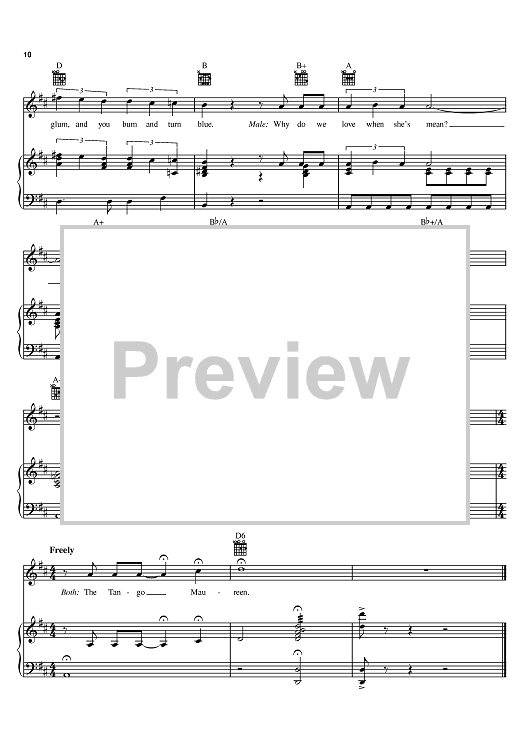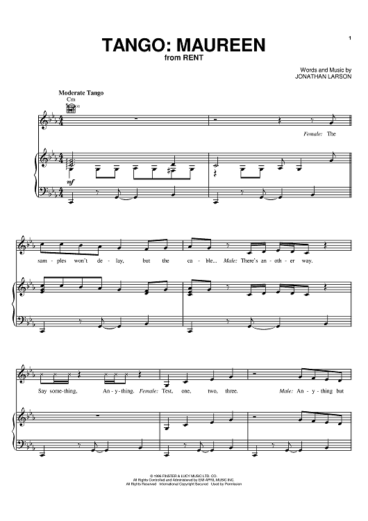 "Tango: Maureen" Sheet Music by Jonathan Larson