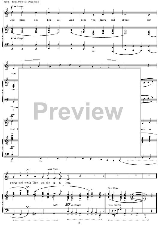 Digital Sheet Music for Texas, Our Texas by William J. Marsh scored for Piano/Vocal/Chords; id:286076