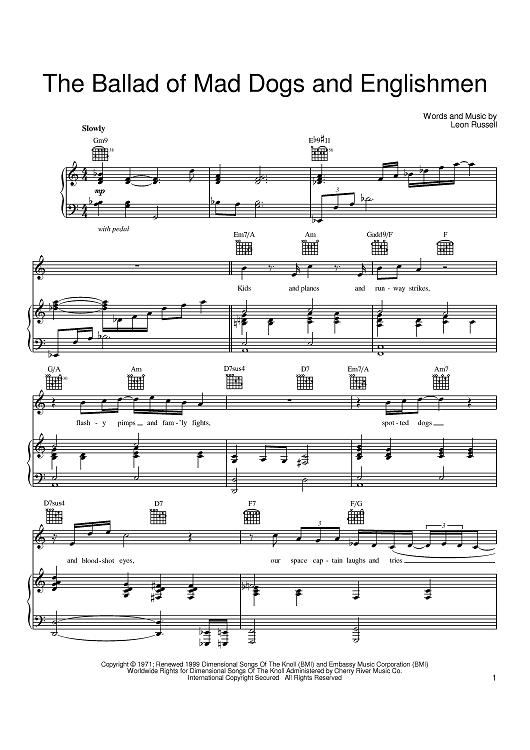 Digital Sheet Music for The Ballad Of Mad Dogs And Englishmen by Leon Russell scored for Piano/Vocal/Chords; id:399115