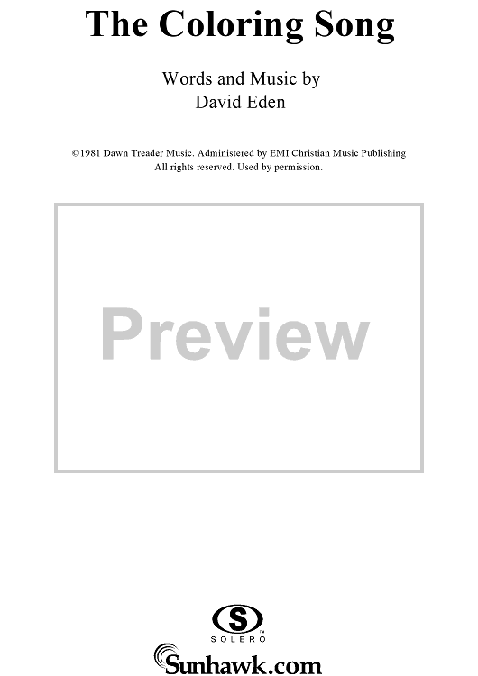 Digital Sheet Music for The Coloring Song by David Eden scored for Piano/Vocal/Chords; id:114335