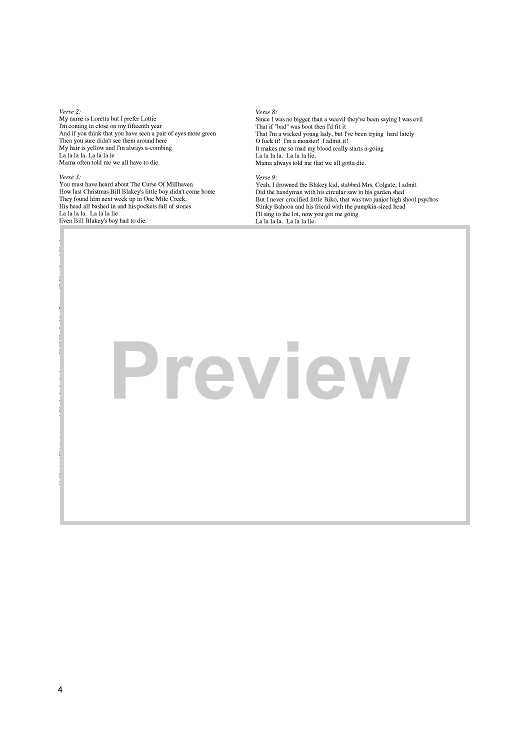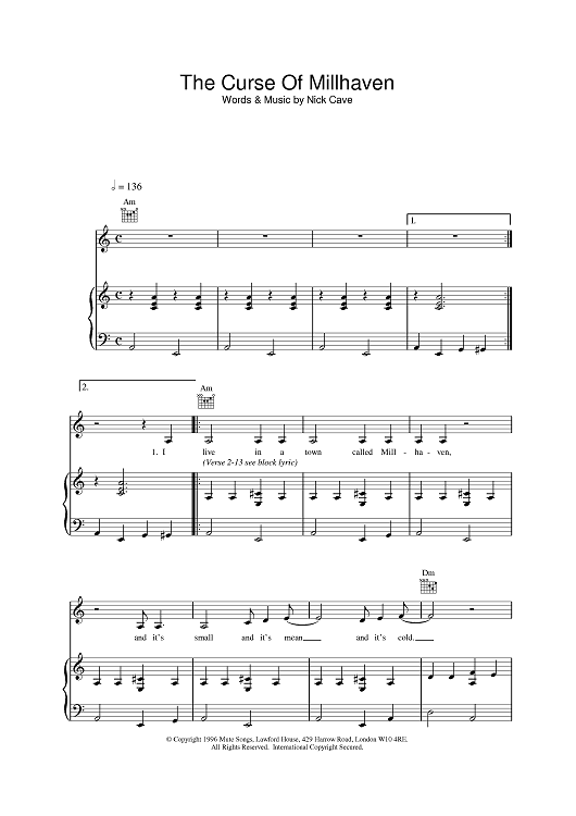 Digital Sheet Music for The Curse Of Millhaven by Nick Cave scored for Piano/Vocal/Chords; id:389947