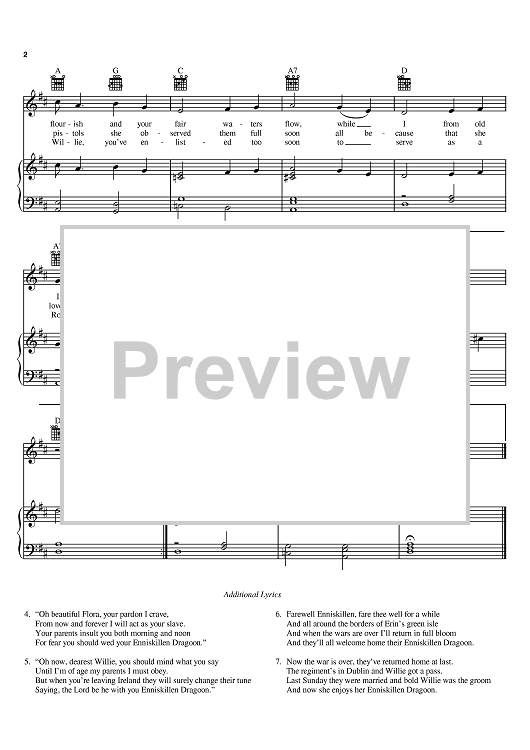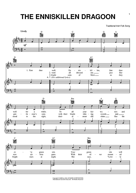 Digital Sheet Music for The Enniskillen Dragoon by scored for Piano/Vocal/Chords; id:394009