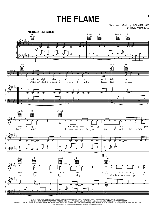 Digital Sheet Music for The Flame by Cheap Trick, Nick Graham, Bob Mitchell scored for Piano/Vocal/Chords; id:369048