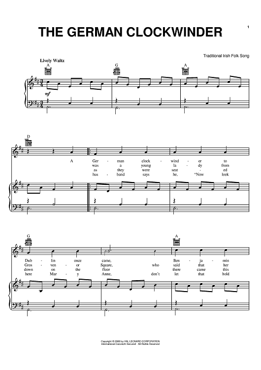 Digital Sheet Music for The German Clockwinder by scored for Piano/Vocal/Chords; id:393915