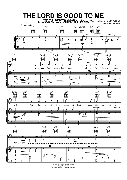 Digital Sheet Music for The Lord Is Good To Me by Walter Kent, Kim Gannon scored for Piano/Vocal/Chords; id:368486
