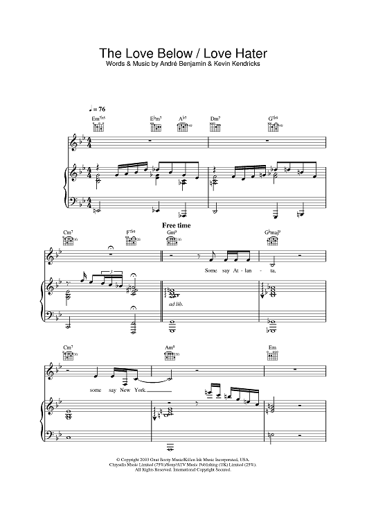 Digital Sheet Music for The Love Below / Love Hater by OutKast scored for Piano/Vocal/Chords; id:378488