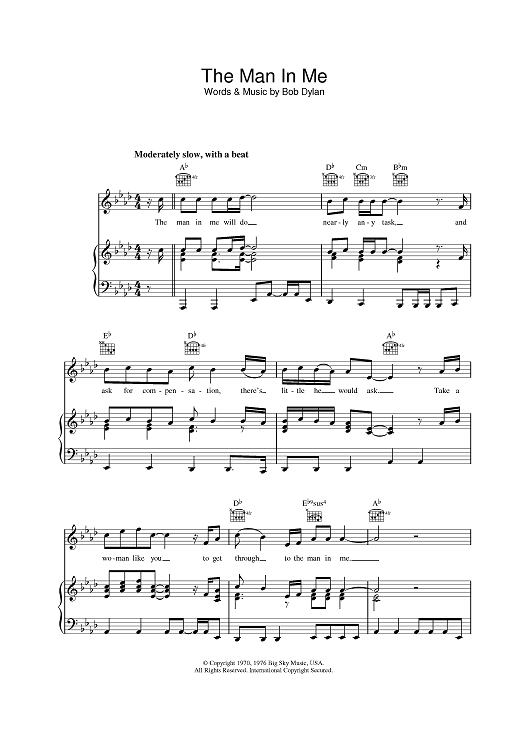 Digital Sheet Music for The Man In Me by Bob Dylan scored for Piano/Vocal/Chords; id:389932