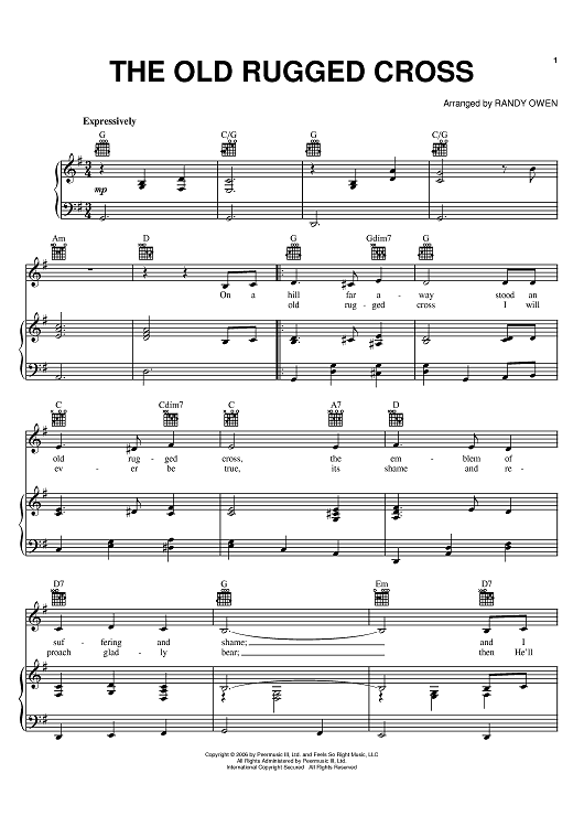 Digital Sheet Music for The Old Rugged Cross by Randy Owen, Alabama scored for Piano/Vocal/Chords; id:396052