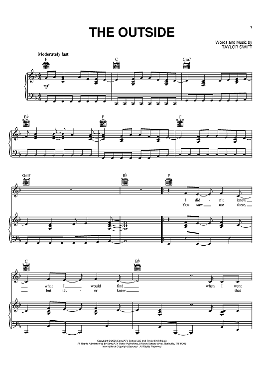 Digital Sheet Music for The Outside by Taylor Swift scored for Piano/Vocal/Chords; id:399375