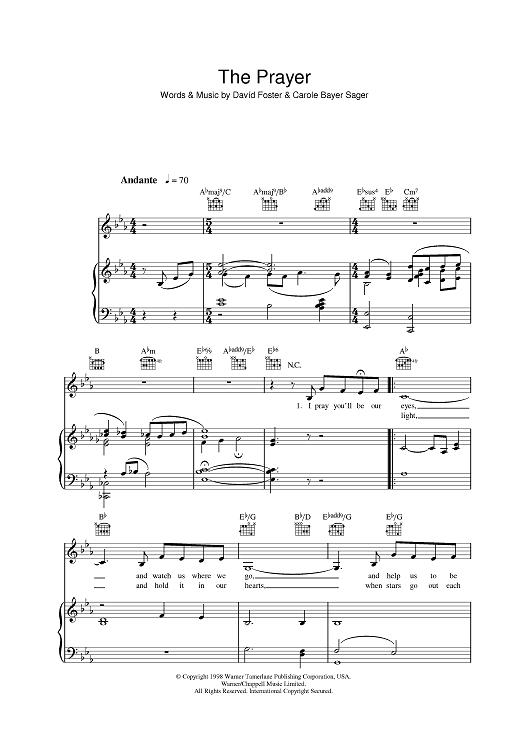Digital Sheet Music for The Prayer by Carole Bayer Sager, Tony Renis, Katherine Jenkins, David Foster scored for Piano/Vocal/Chords; id:397676