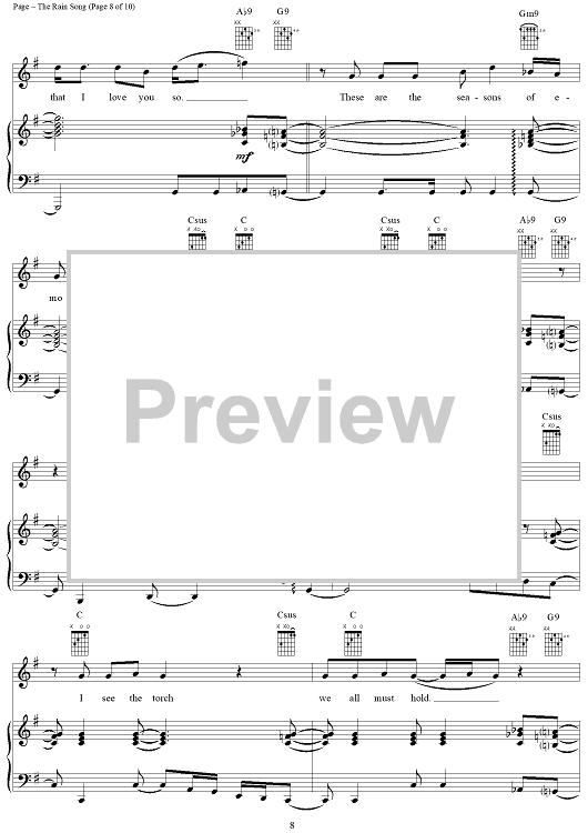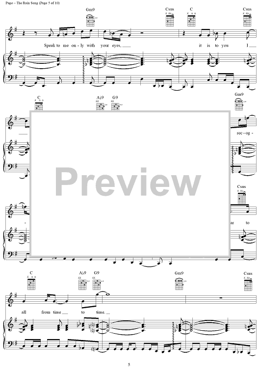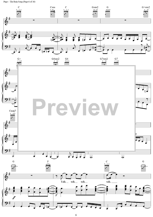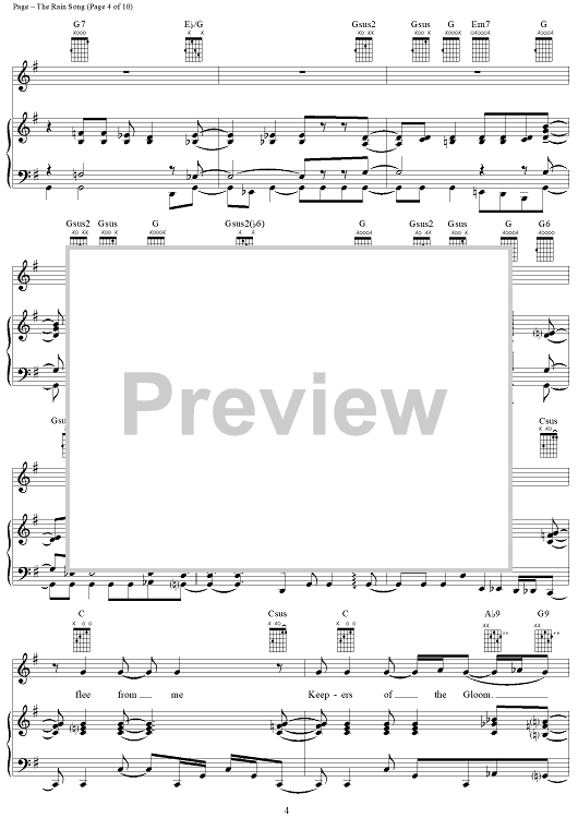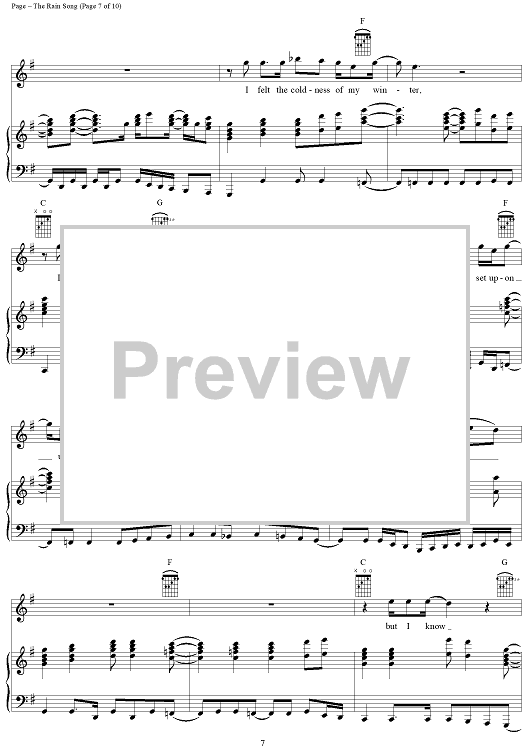 Digital Sheet Music for The Rain Song by Jimmy Page, Led Zeppelin, Robert Plant scored for Piano/Vocal/Chords; id:233149