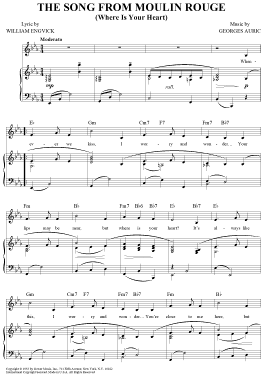 Digital Sheet Music for The Song from Moulin Rouge (Where Is Your Heart) by Georges Auric, William Engvick scored for Piano/Vocal/Chords; id:362945