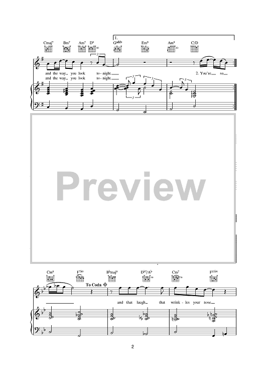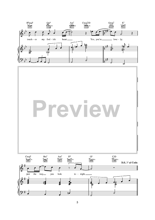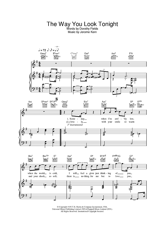 Digital Sheet Music for The Way You Look Tonight by Frank Sinatra, Fred Astaire, Billie Holiday, Rod Stewart, Jerome Kern, Dorothy Fields, Michael Buble, Slick Rick scored for Piano/Vocal/Chords; id:375636