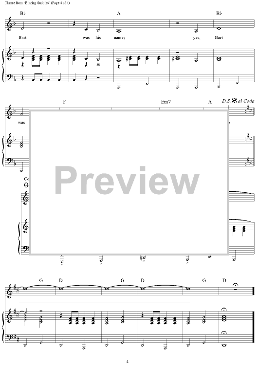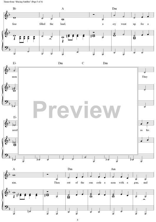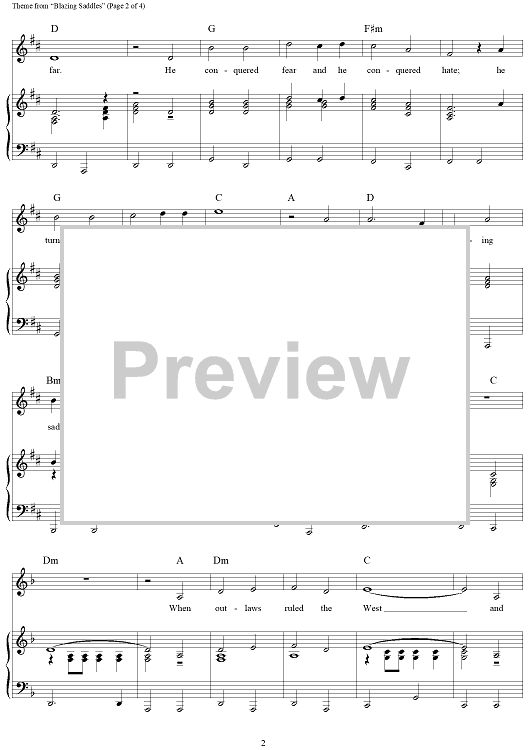 Digital Sheet Music for Theme from "Blazing Saddles" by John Morris, Mel Brooks scored for Piano/Vocal/Chords; id:117331