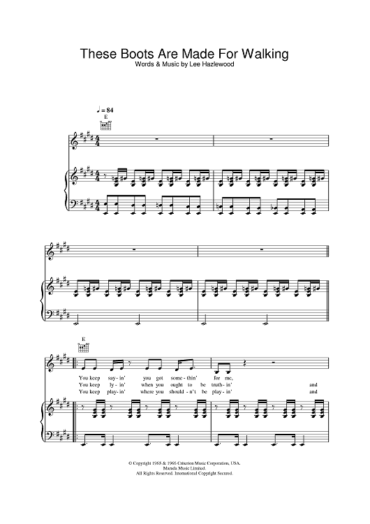 Digital Sheet Music for These Boots Are Made For Walking by Nancy Sinatra, Jessica Simpson, Lee Hazlewood scored for Piano/Vocal/Chords; id:381255