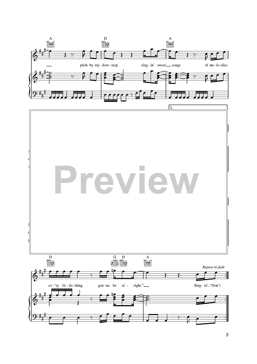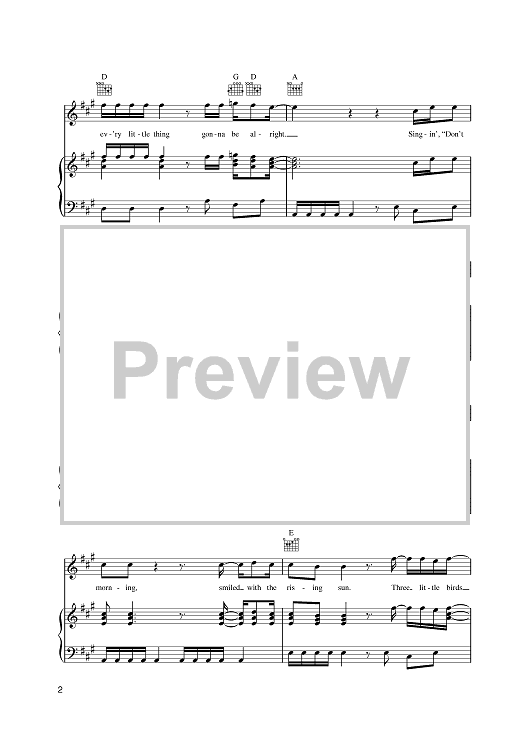 Digital Sheet Music for Three Little Birds by Bob Marley scored for Piano/Vocal/Chords; id:387461
