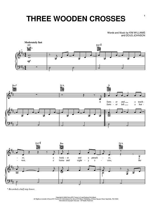 Digital Sheet Music for Three Wooden Crosses by Randy Travis, Kim Williams, Doug Johnson scored for Piano/Vocal/Chords; id:371234