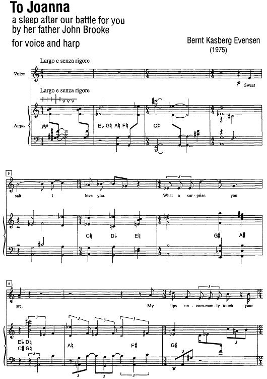 Digital Sheet Music for To Joanna by Bernt Kasberg Evensen scored for Voice/Harp; id:329938