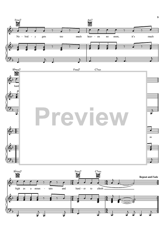 Digital Sheet Music for Too Much Heaven by Bee Gees, Maurice Gibb, Barry Gibb, Robin Gibb scored for Piano/Vocal/Chords; id:369369