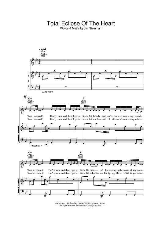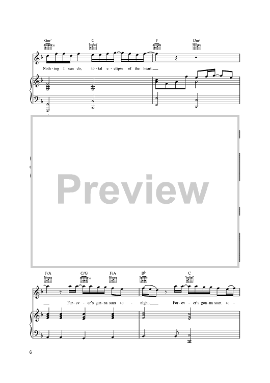 Digital Sheet Music for Total Eclipse Of The Heart by Jim Steinman, Westlife scored for Piano/Vocal/Chords; id:395708