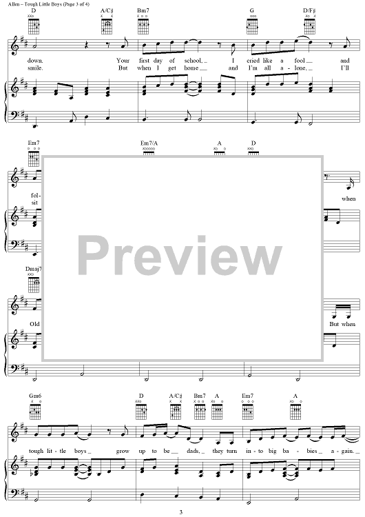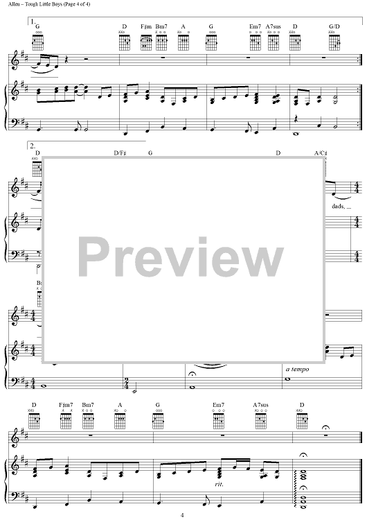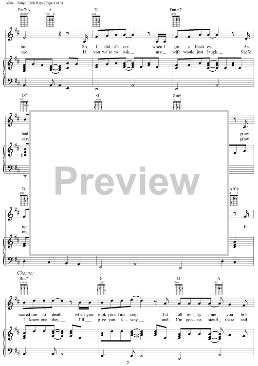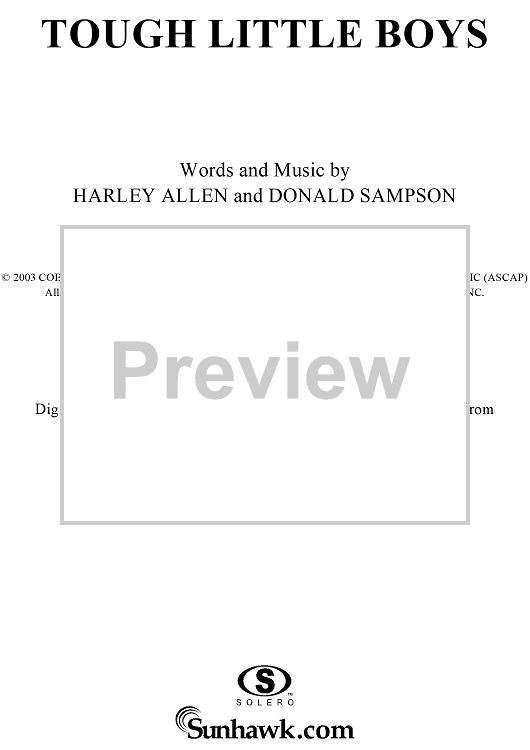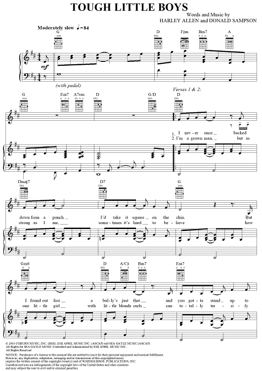 Digital Sheet Music for Tough Little Boys by Harley Allen, Gary Allan, Donald Sampson scored for Piano/Vocal/Chords; id:303106